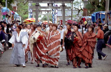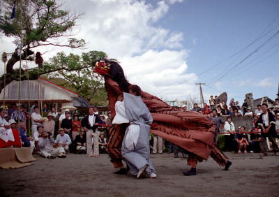 このお祭りの呼び物は、「狂い獅子」と「佐喜浜俄」です。